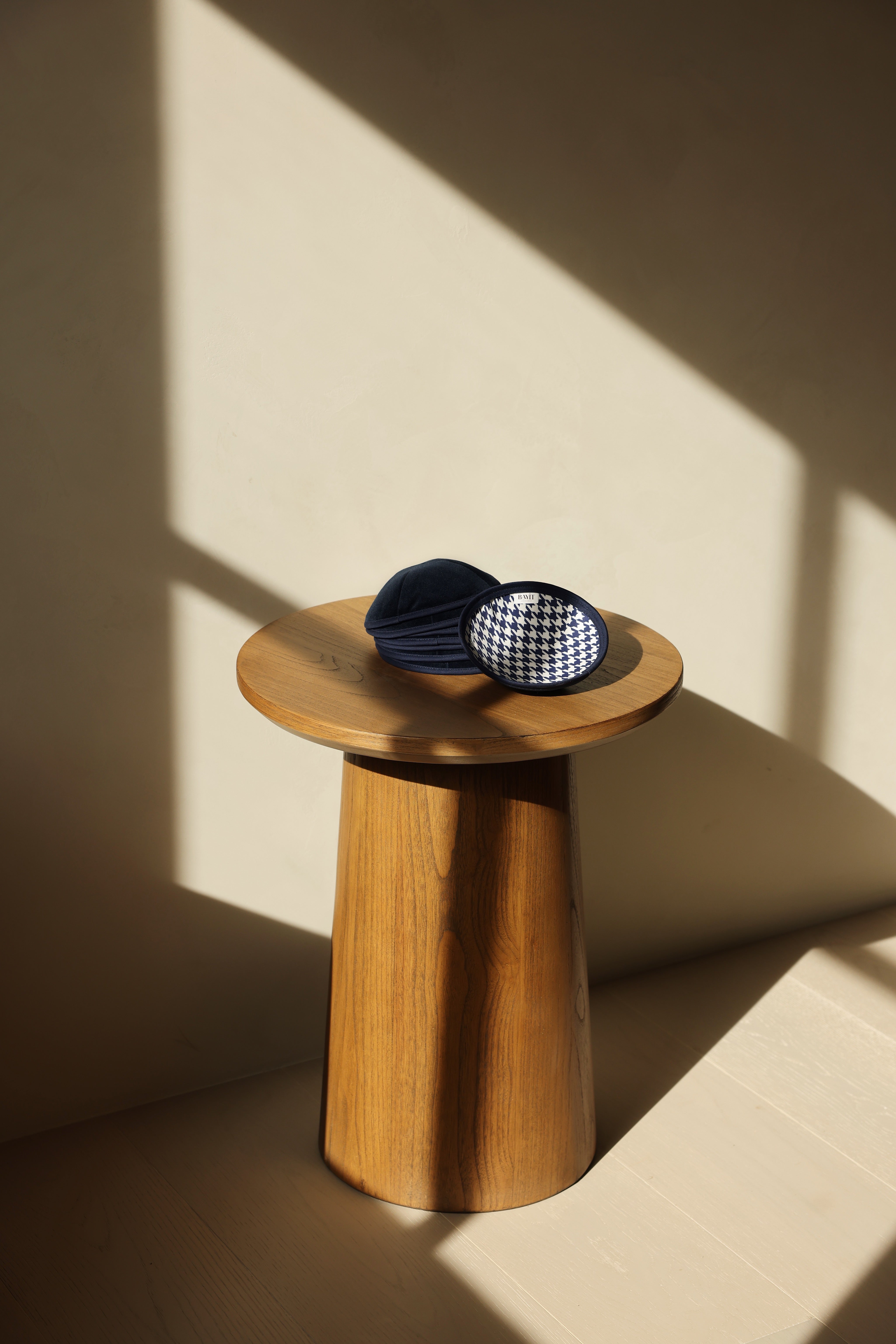 Midnight Blue Velvet Kippah with Houndstooth Print