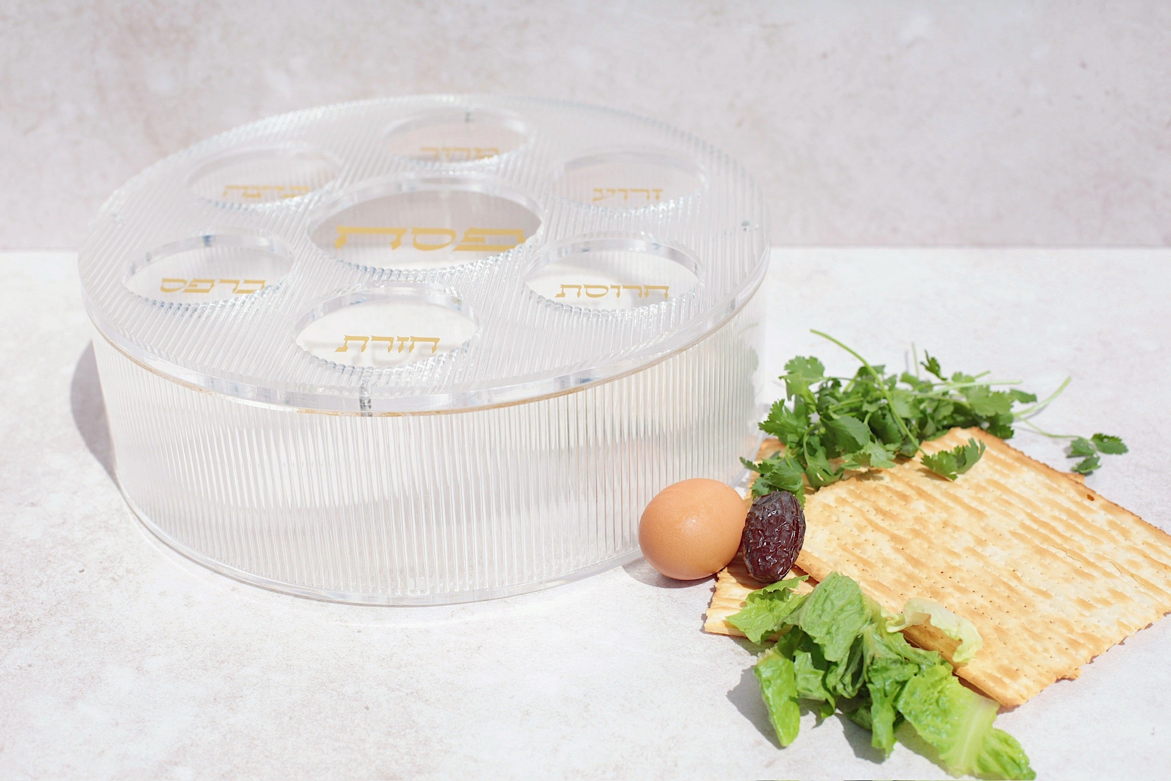 The 2 in 1 piece you need on your Passover table! In our original BAYIT ribbed design & touches of matte gold, our Round Matzah Box & Seder Plate gives the unique touch & placement for these special items on our holiday table.