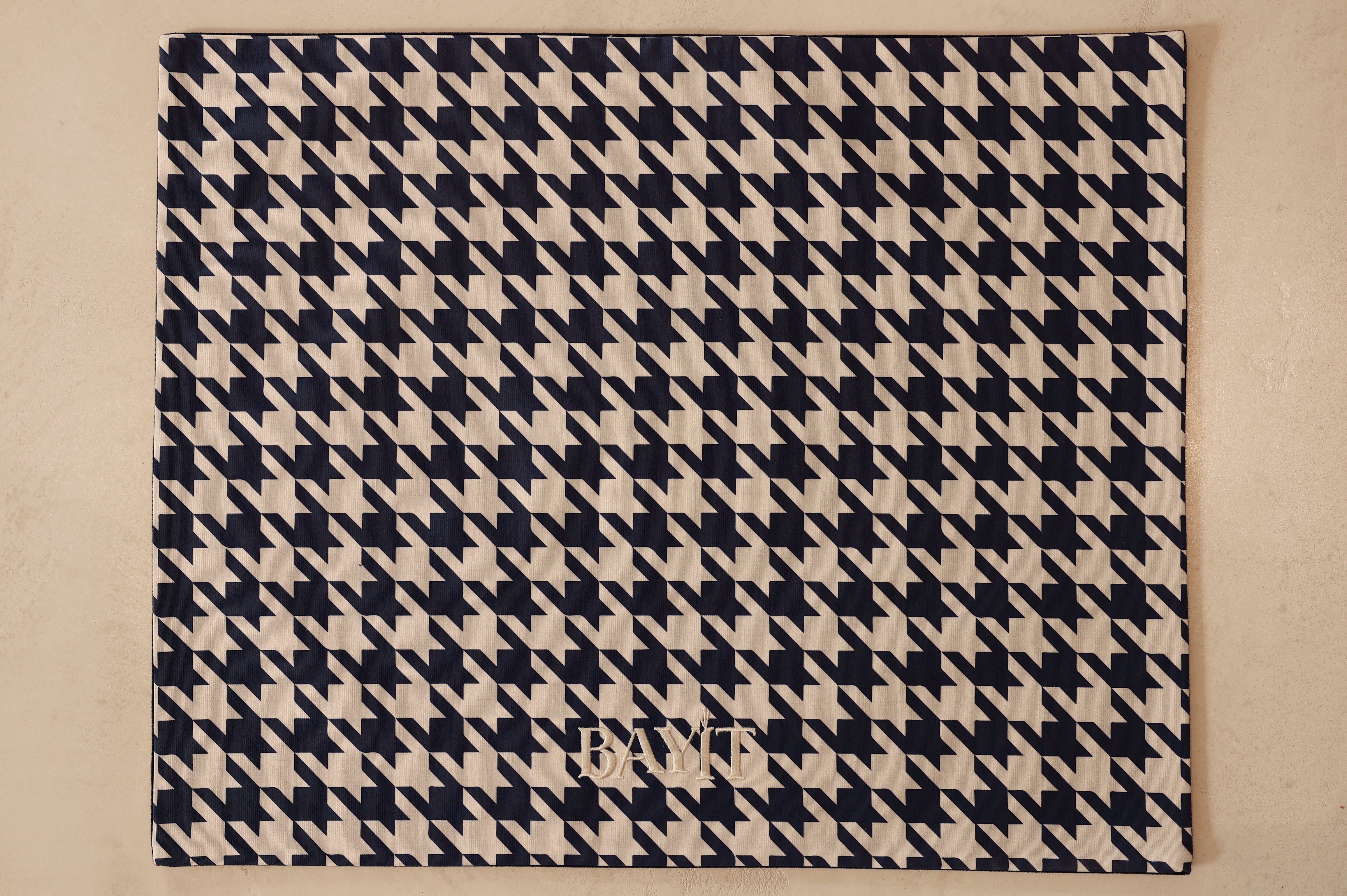 Navy Velvet Cover with Houndstooth Print Cotton Twill Backing